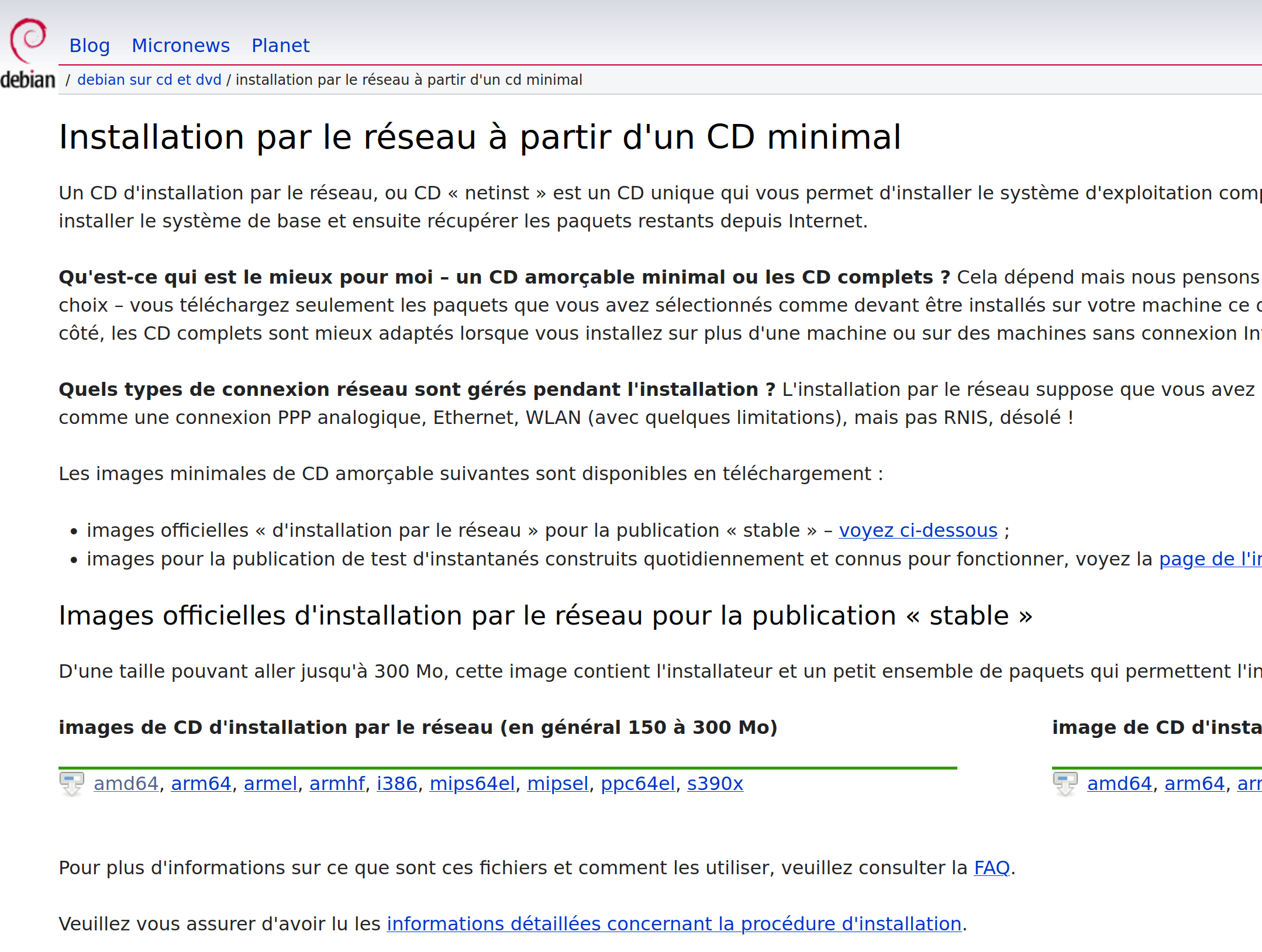 Télécharger CD "netinst" pour architecture AMD64
